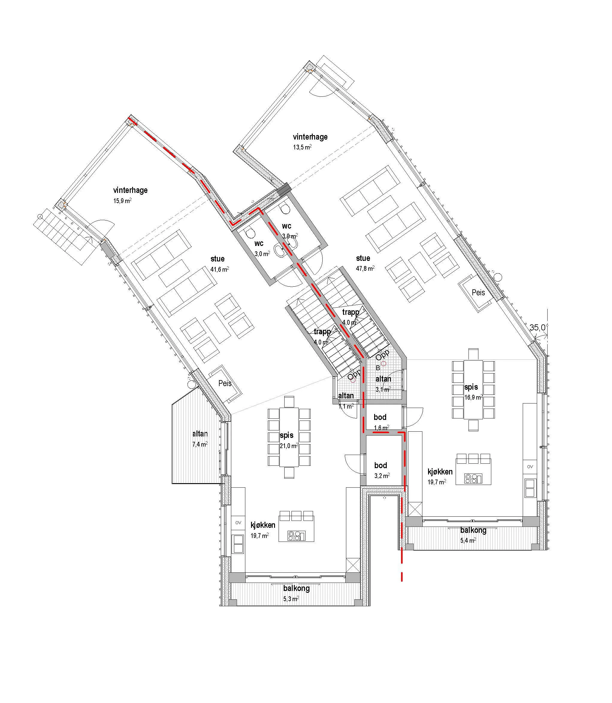 Bankveien 47 er en moderne tomannsbolig på Hosle i Bærum, som er skånsomt tilpasset omgivelsene. Bygningen følger tomtens naturlige topografi, trappes ned mot baksiden og utformes med flatt tak for å gi en lav og lite dominerende bebyggelse. Volumet er knekket i flere retninger for å sikre gode solforhold, rik utsikt, skjermede uteoppholdsarealer og god avstand til nabobebyggelse. Material- og fargevalg gir bygningen en rolig og tilpasset fremtoning i landskapet.