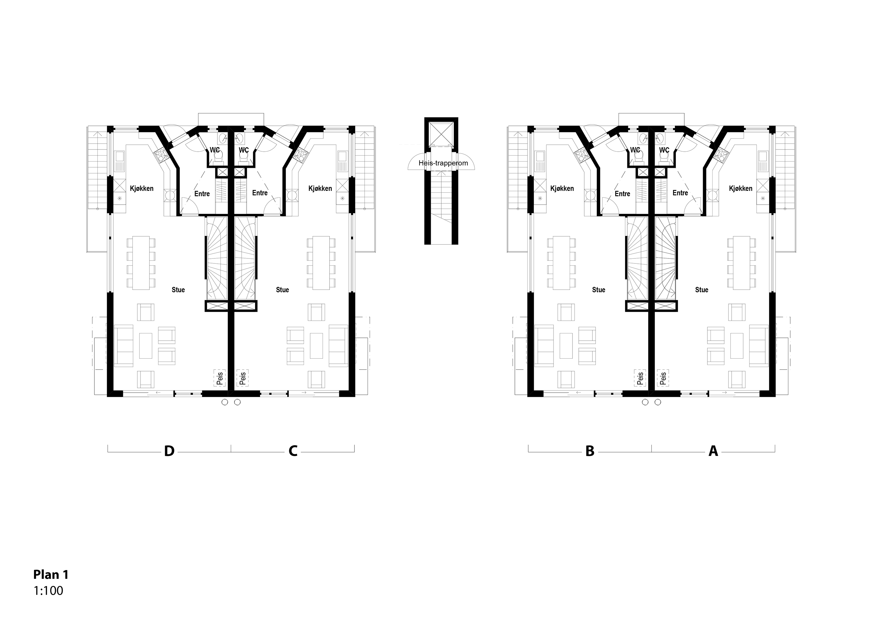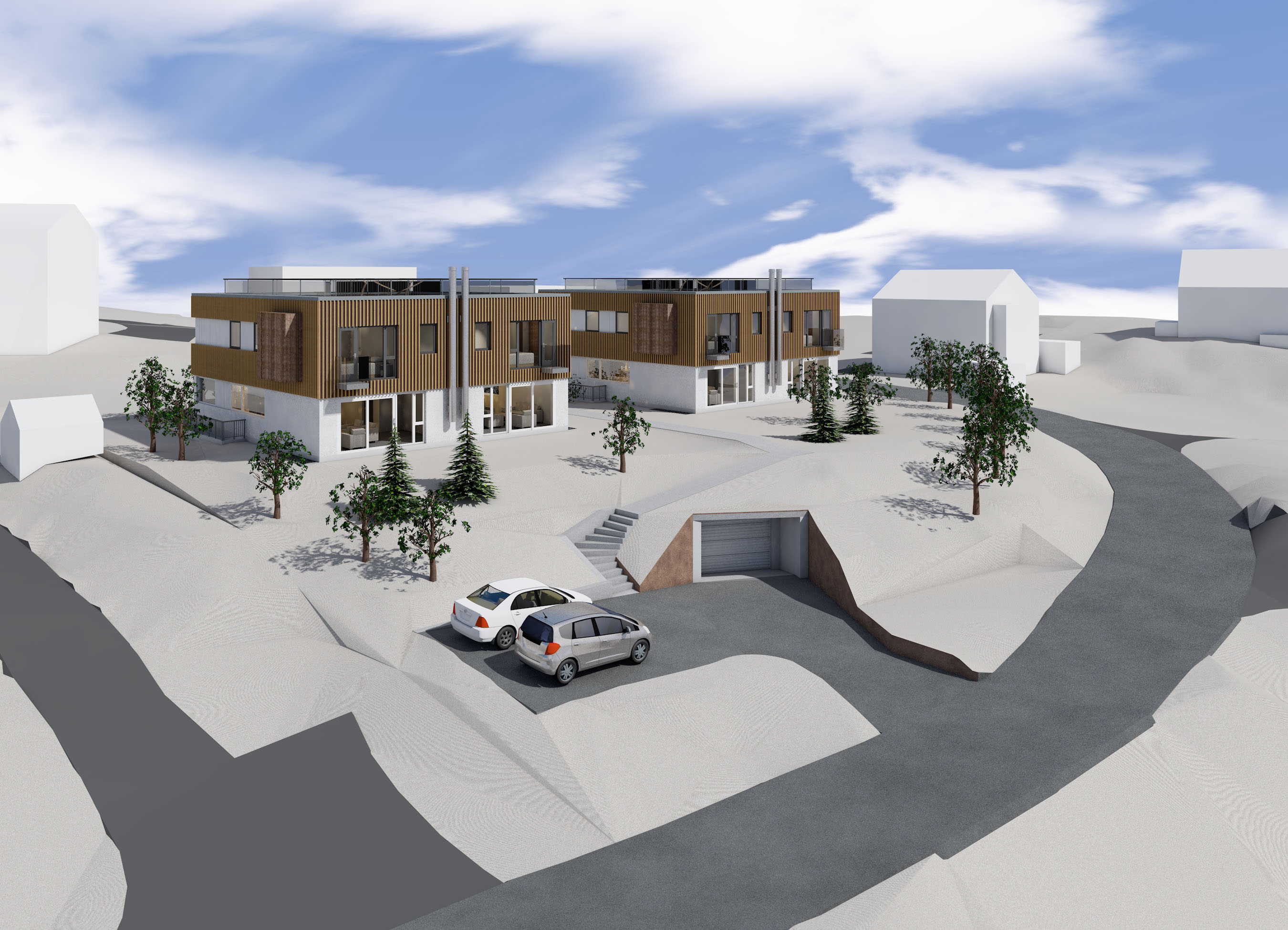 Eneboligen på Jar ble utviklet i tett samarbeid med byggherre, hvor det ble fokusert på bruk av ulike fasadematerialer som gir et spennende og variert uttrykk. Boligen møter bakken med naturlige materialer som tar opp omgivelsene rundt. Den varme trekledningen står i god kontrast til den pussede fasaden og den steinbelagte basen. Boligen går over to plan med stor terrasse i 2. etasje og garasje under terreng.