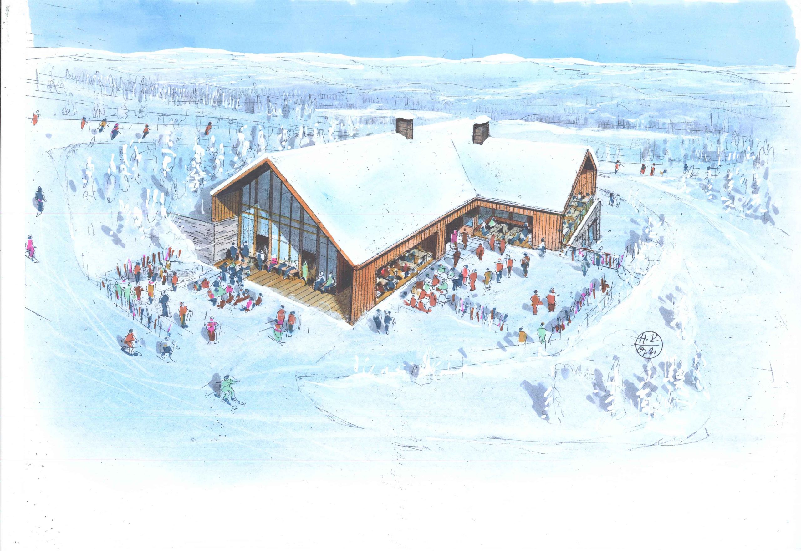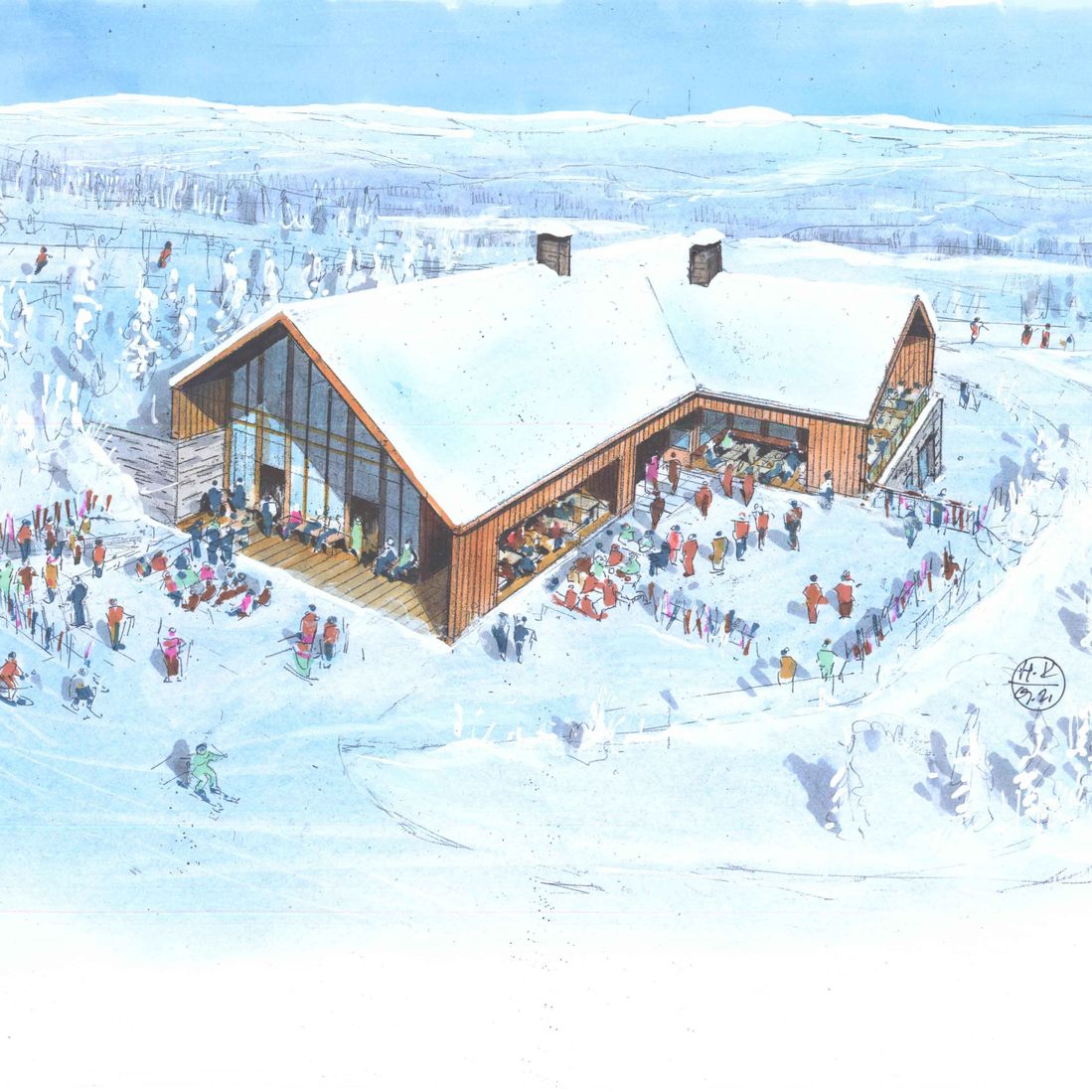Prosjektet begynte som et utkast i 2018/2019 i forbindelse med skisser til et leilighetsprosjekt i samme område. Fjellrestauranten ble prosjektert med et enkelt og moderne uttrykk, men med tradisjonelle materialer som jernvitrol-behandlet trekledning, torv på taket og skifer-elementer i sokkelen. Den tunge basen i stein gir en vekt til treet som krager ut. Den tydelige formen trer frem i landskapet og blir et og visuelt symbol, der den ligger alene og fremtredende i alpinbakken. Gavlveggen, med store inntrukne vinduer, krager ut og strekker seg mot utsikten.