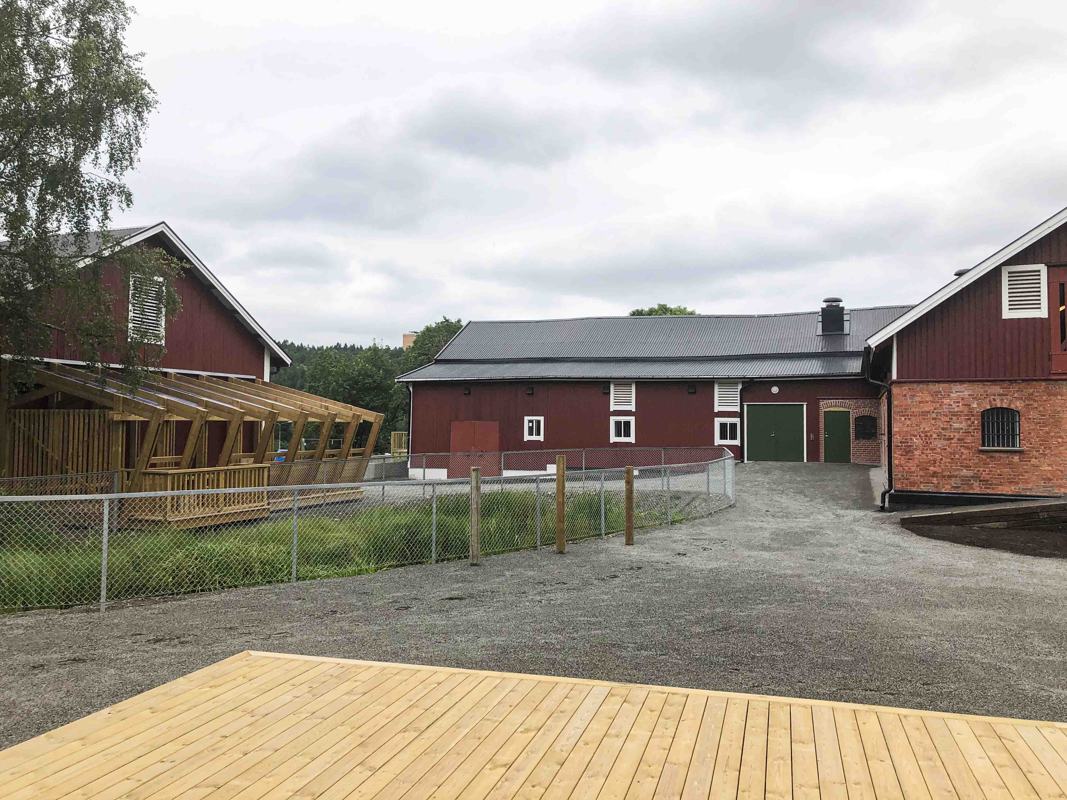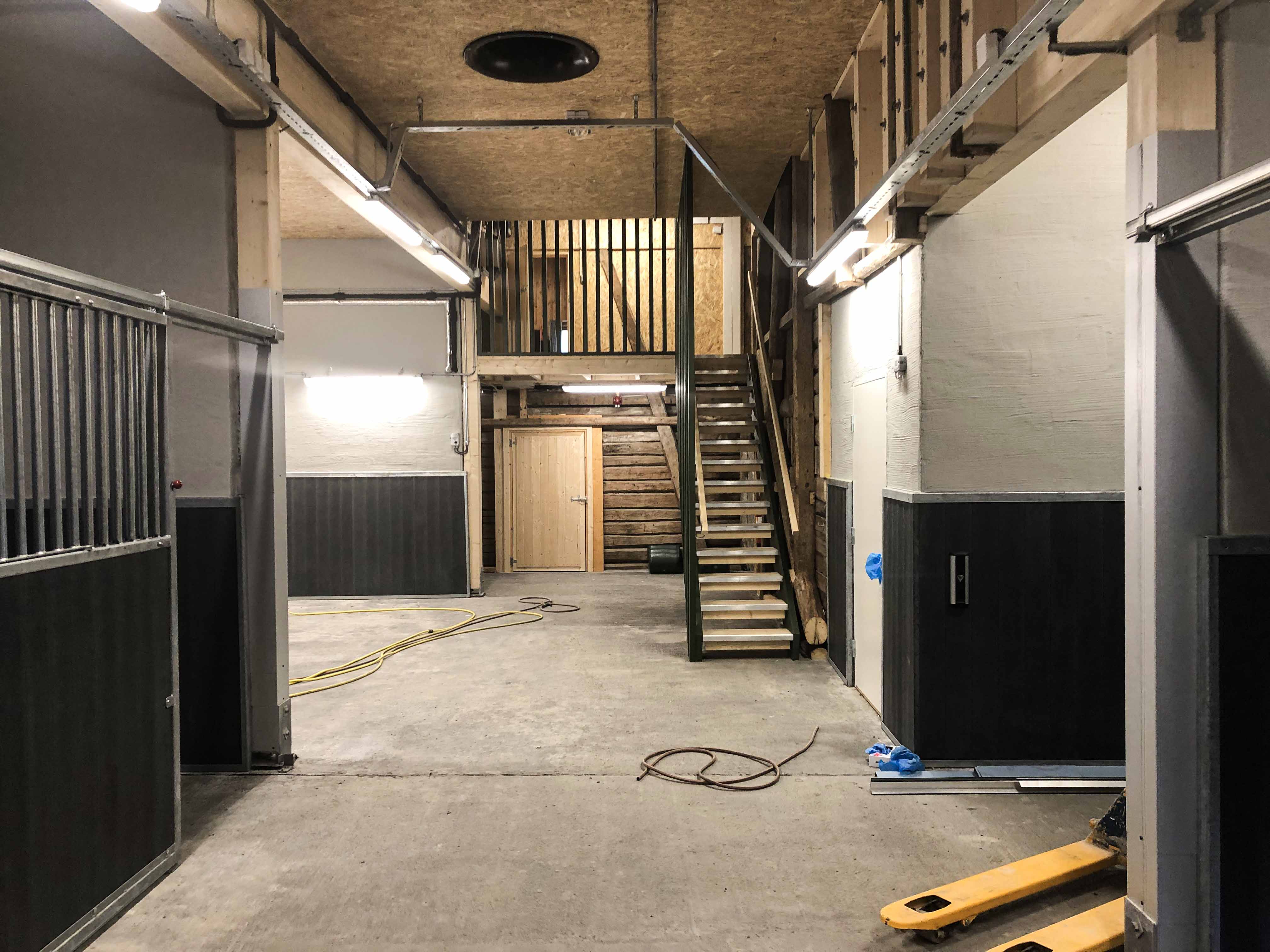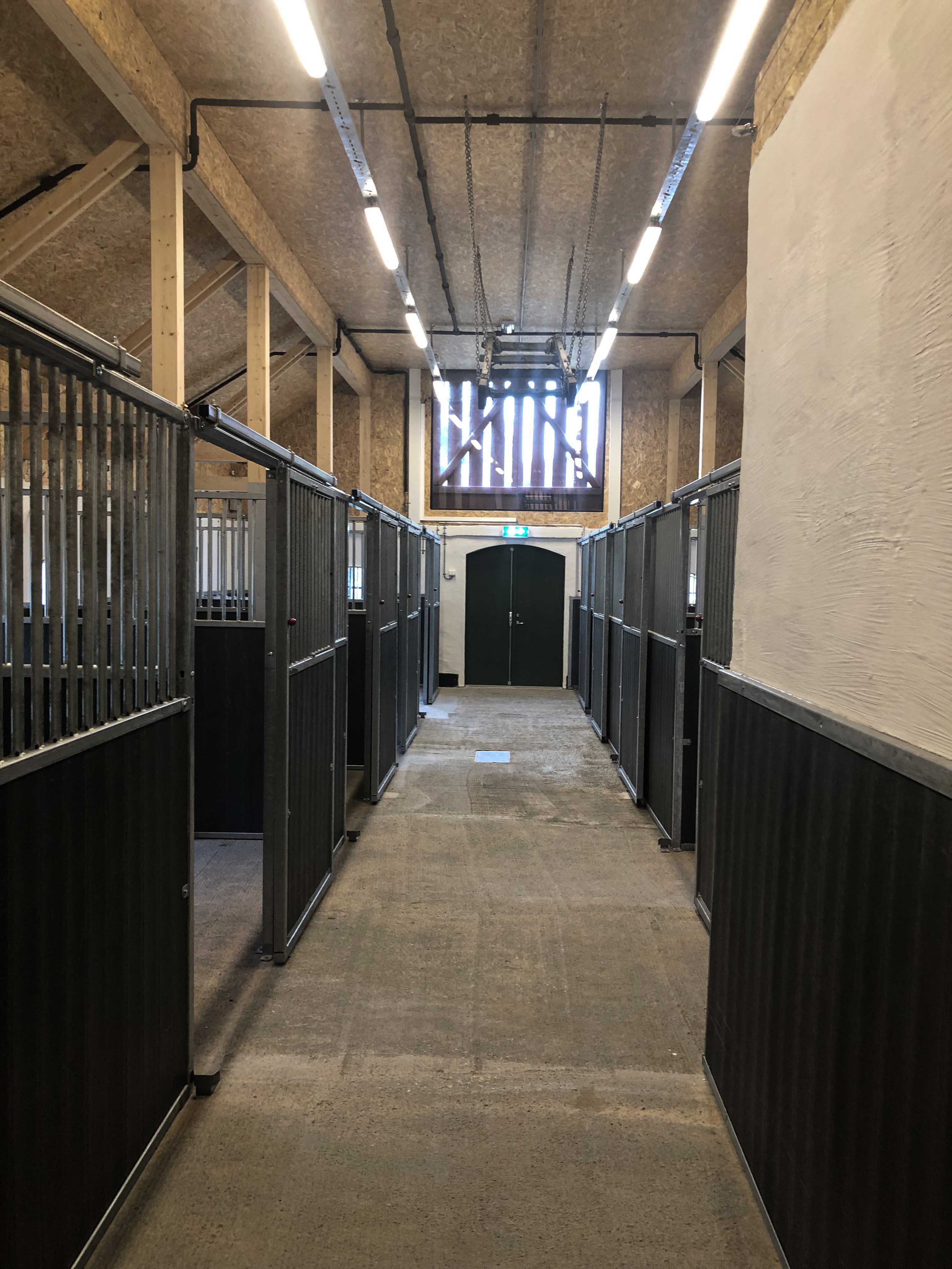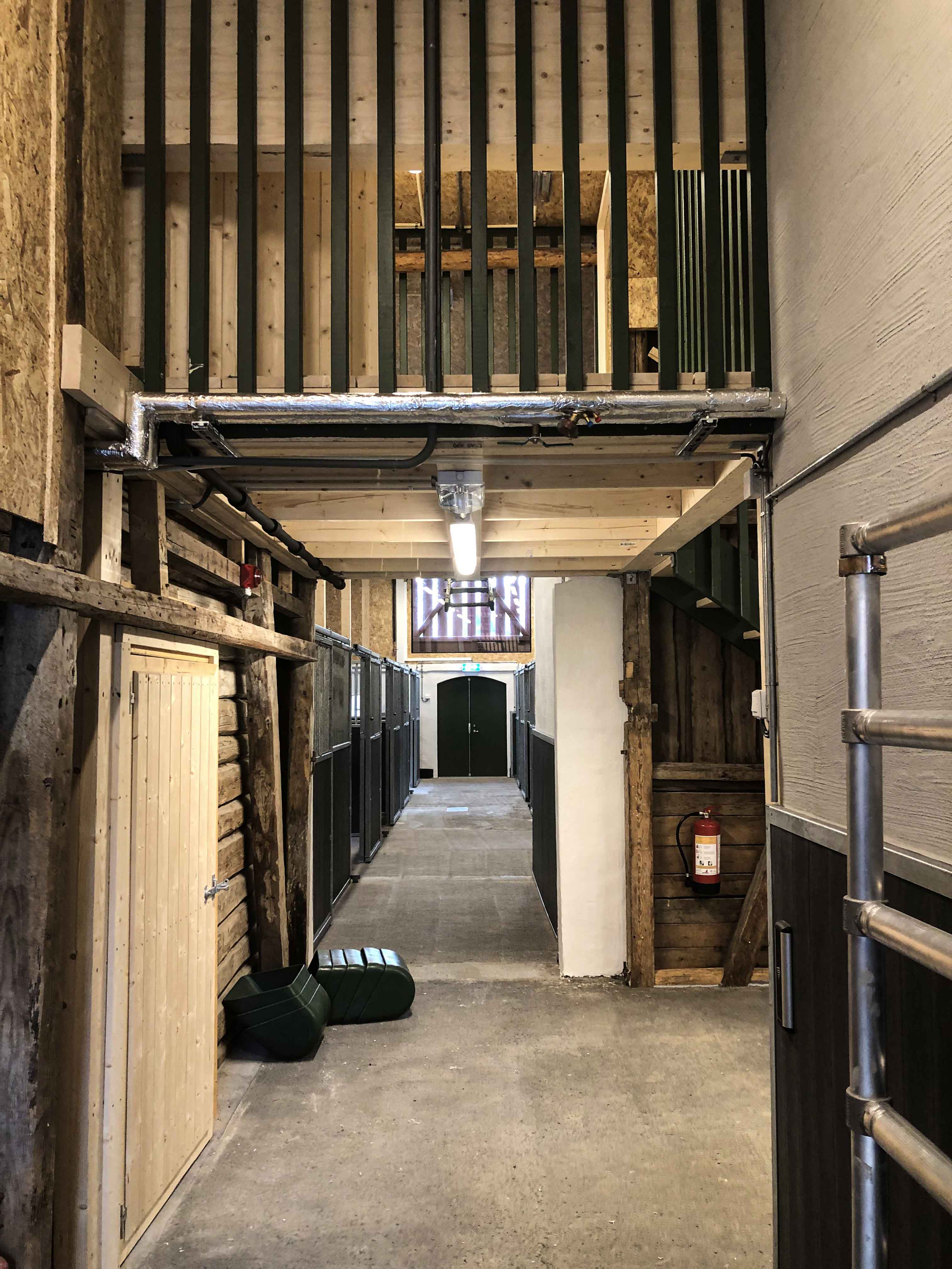 Den rehabiliterte driftsbygningen(stallen), som består av kjeller, første etasje samt loft og høyloft, tilfredsstiller nå dagens krav til universell utforming. Etter rehabiliteringen har stallen fått 18 bokser i ulik størrelse. I tillegg har stallen vaskeplass for hester og rom til utstyr. I kjelleren er det vaskerom, garderober, oppholdsrom, HC-toaletter og dusj.