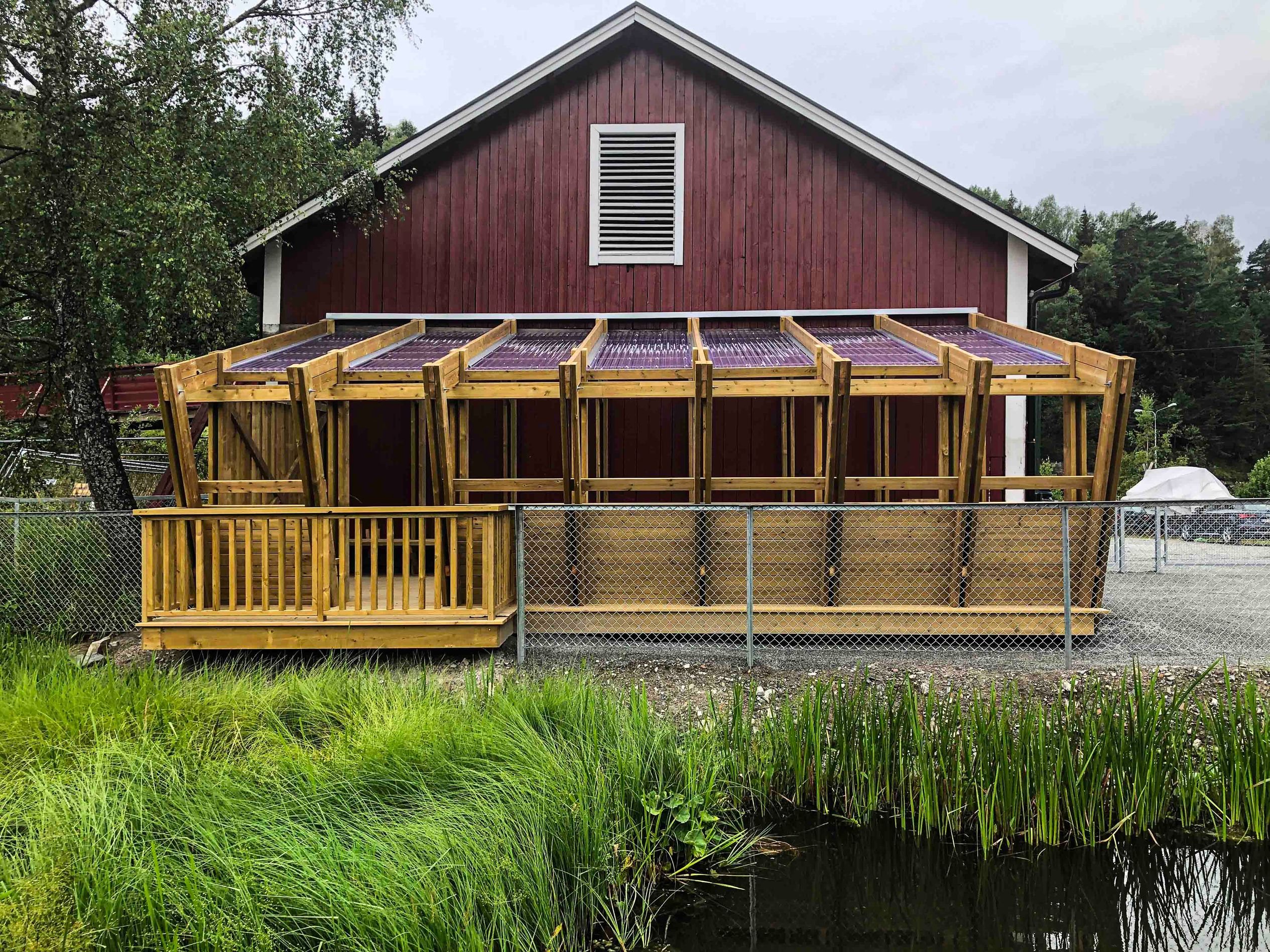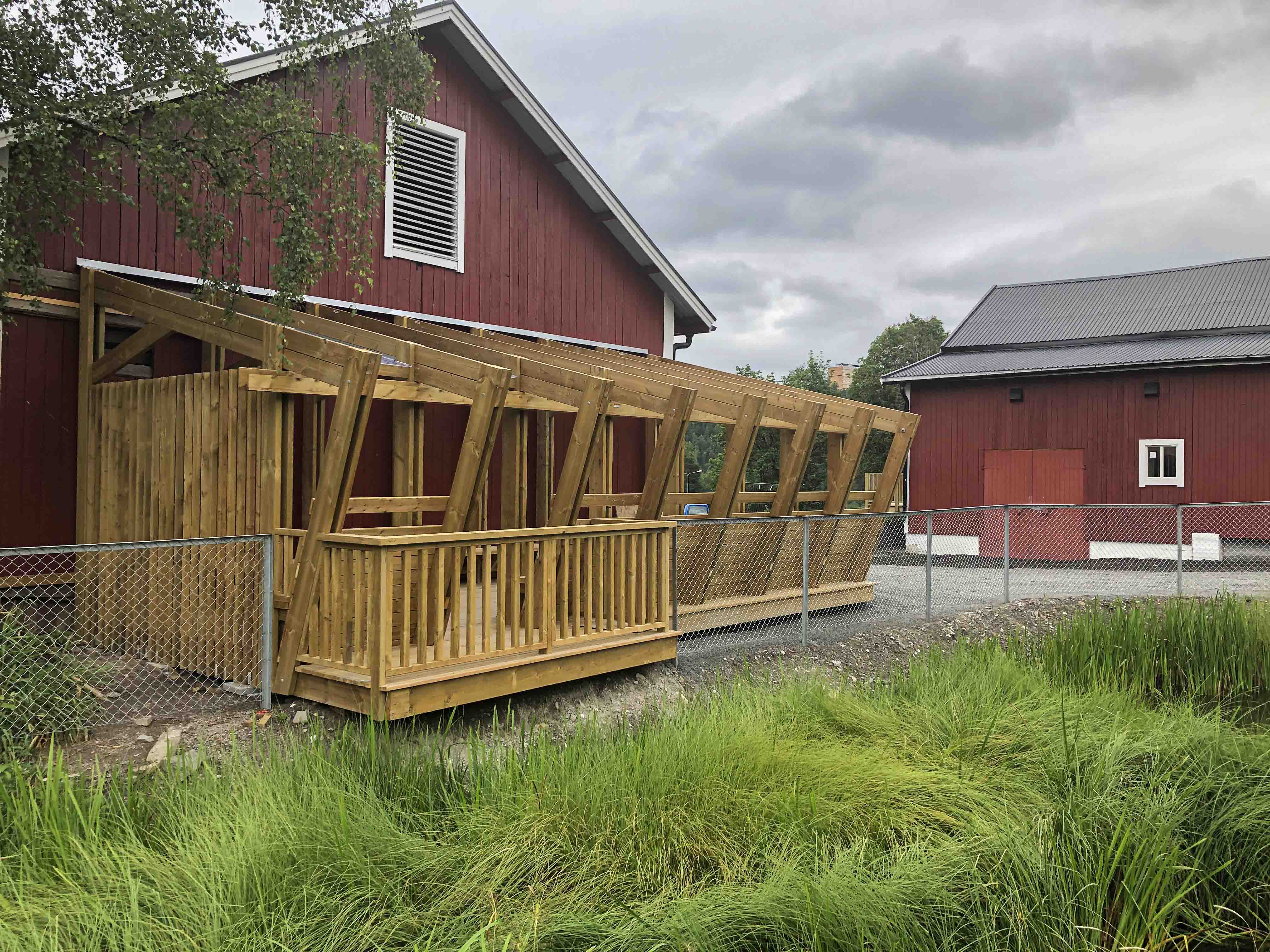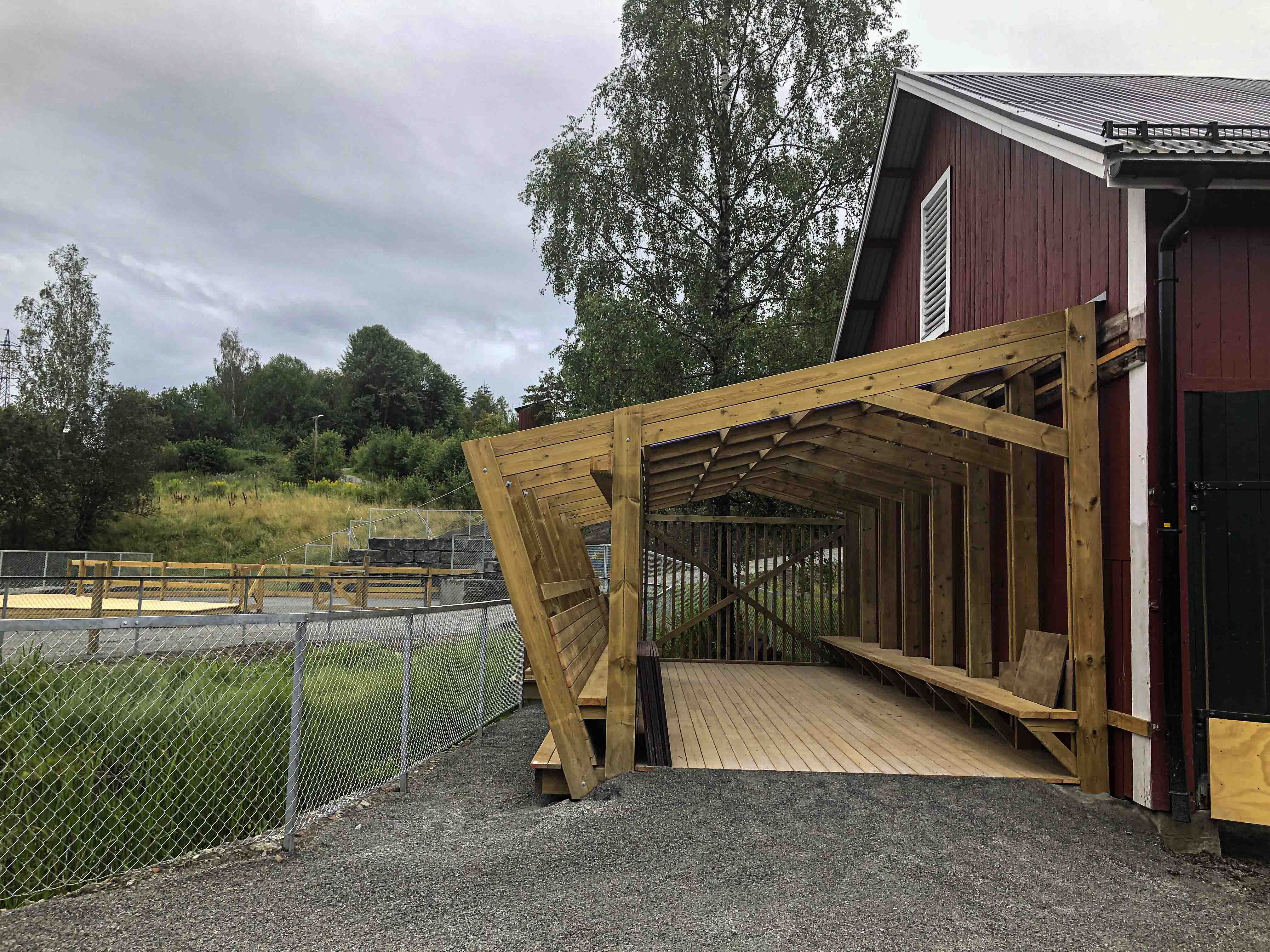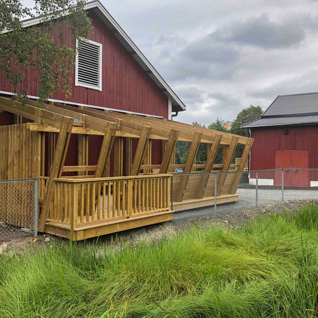 Den rehabiliterte driftsbygningen(stallen), som består av kjeller, første etasje samt loft og høyloft, tilfredsstiller nå dagens krav til universell utforming. Etter rehabiliteringen har stallen fått 18 bokser i ulik størrelse. I tillegg har stallen vaskeplass for hester og rom til utstyr. I kjelleren er det vaskerom, garderober, oppholdsrom, HC-toaletter og dusj.